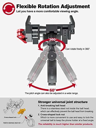 Specification: Tiakia 2022 mobiele telefoonhouder voor op de fiets, aluminiumlegering, 6 klauwen met 360° rotatie, universele…