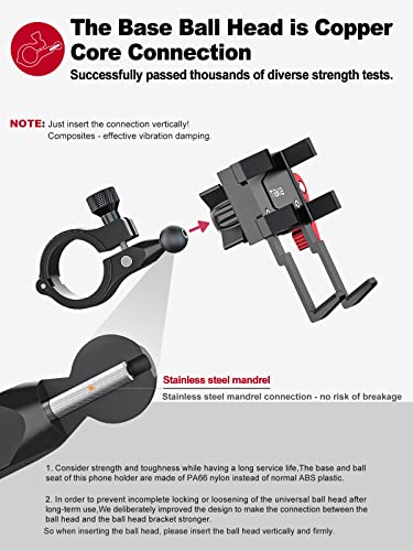 Aluminiumlegeringsmateriaal voor de luchtvaart: deze motorhouder bestaat uit 6063 luchtvaart-aluminiumlegering, dat sterk en duurzaam is, CNC-bewerking en roestvrijstalen schroefverbindingen. In vergelijking met telefoonhouders van kunststof en siliconen is het sterker, heeft het geen trillingen of geluiden en vervaagt het niet.