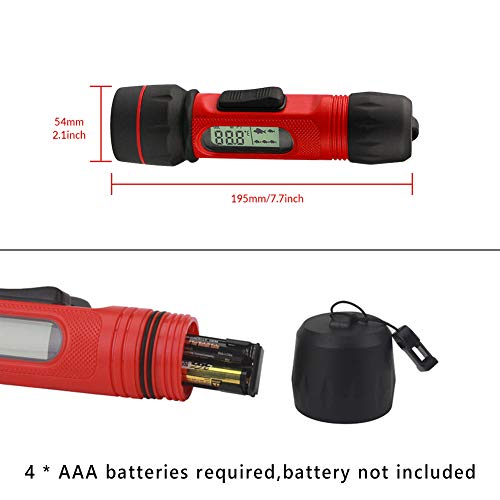 Draagbaar formaat 195 x 54 x 54 mm en gering gewicht van 300 g, de staart met sleutelkoord, eenvoudig te dragen en op te bergen, 4 AAA-batterijen nodig, 40 uur gebruiksduur, batterij niet inbegrepen.