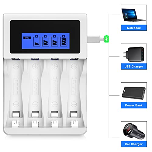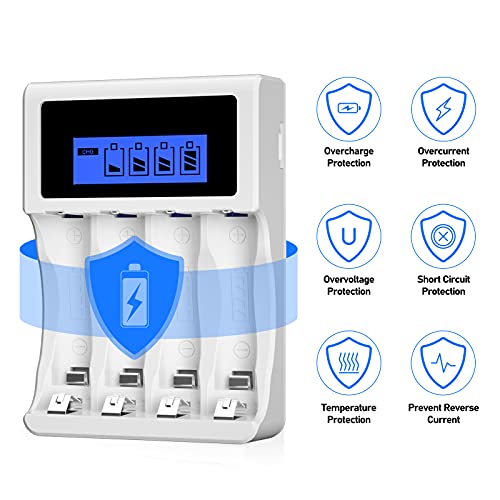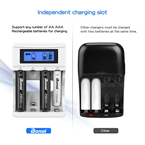 BONAI Batterijlader 4 Slots LCD Acculader voor AA/AAA Ni-MH Ni-CD Oplaadbare Batterijen