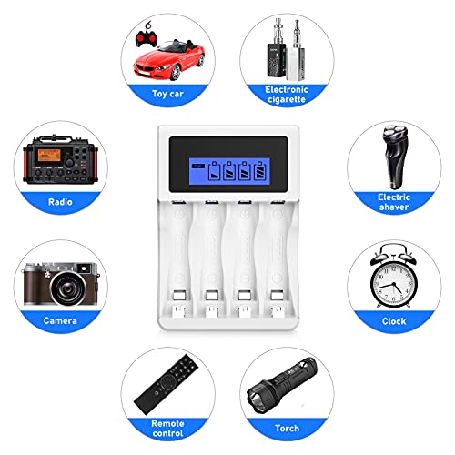 🔋Batterijlader Onafhankelijk oplaadontwerp,het is gratis om een onbeperkt aantal AA / AAA Ni-MH / Ni-Cd-batterijen op te laden.