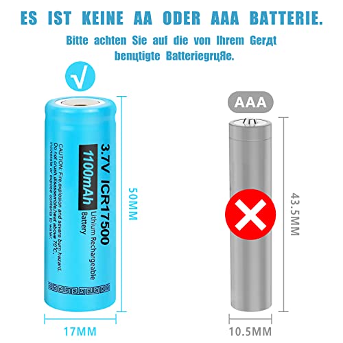 Specification: 17500 3,7 V 1100 mAh icr17500 Li-ion oplaadbare batterij Flat Top 3 stuks