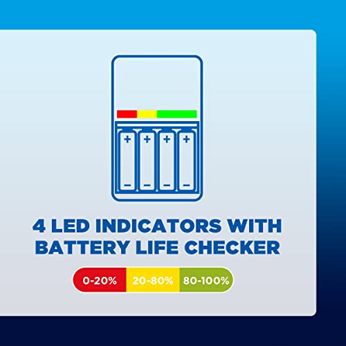 Het duur slechts 1,5 uur om 1-2 eneloop AA-batterijen (2000 mAh) volledig te laden. De Battery-Life Checker controleert in welke toestand uw accu’s zich bevinden en geeft aan wanneer een accu vervangen moet worden.