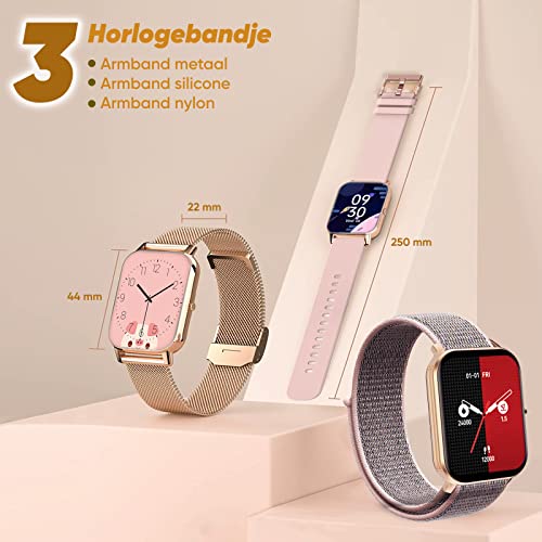 Android smartwatch voor dames met telefoonfunctie en WhatsApp-functie 1,7 inch, smartwatch fitness-tracker voor dames…