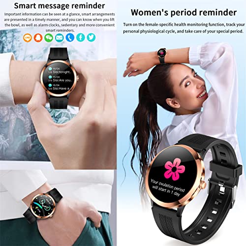 Smartwatch Dames, Fitness horloge Full Touch 1,32 Inch Hartslagmeter Pols Bloeddruk Stappenteller Calorieën Meldingen Berichten Smart Watch IP68 voor Android iOS