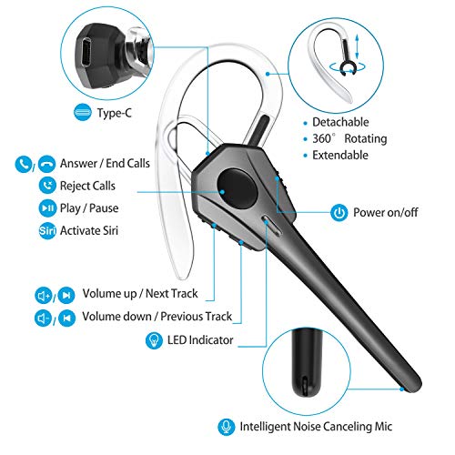 【Comfortabel en handig】 Ultra-licht ontwerp, de headset weegt slechts 7,9 g. Wordt geleverd met 4 oordopjes (één op de headset). Het is comfortabel genoeg om meerdere uren per keer te dragen. De intrekbare en 360 graden draaibare oorhaak maakt het mogelijk om de hoek aan te passen en deze headset in het rechter- of linkeroor te passen.