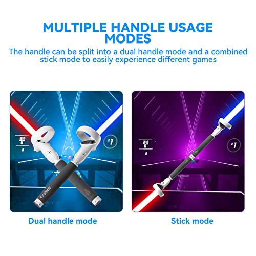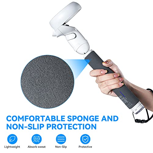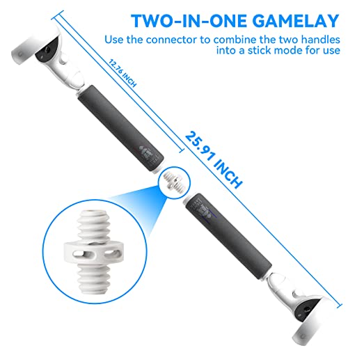 【2-in-1 handgreep】Het uiteinde van de handgreep is afneembaar, schroef hem los om de twee handgrepen te combineren in een 40 cm stick met een connector, simuleert het vasthouden van een lange stok, meer geschikt voor VR golf/honkbal/vissen enz.